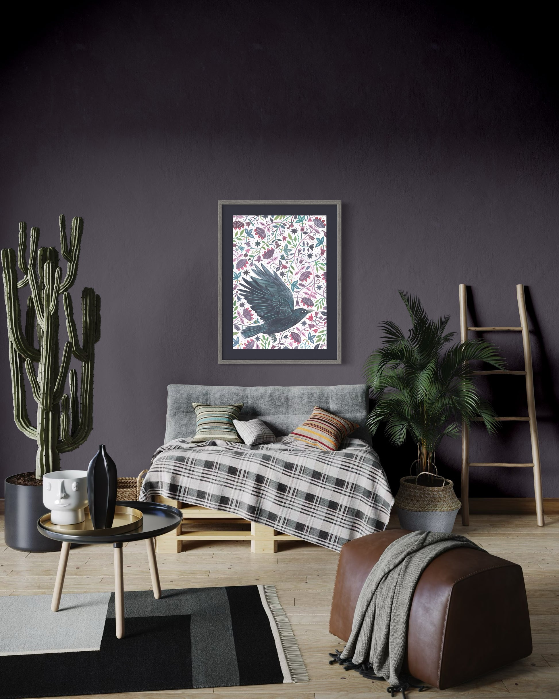 The mix of dark, rich tones in the bird against the soft, colourful background makes it a striking piece for any room. It’s perfect for anyone who shares my appreciation for these intelligent birds and for the beauty of the natural world.