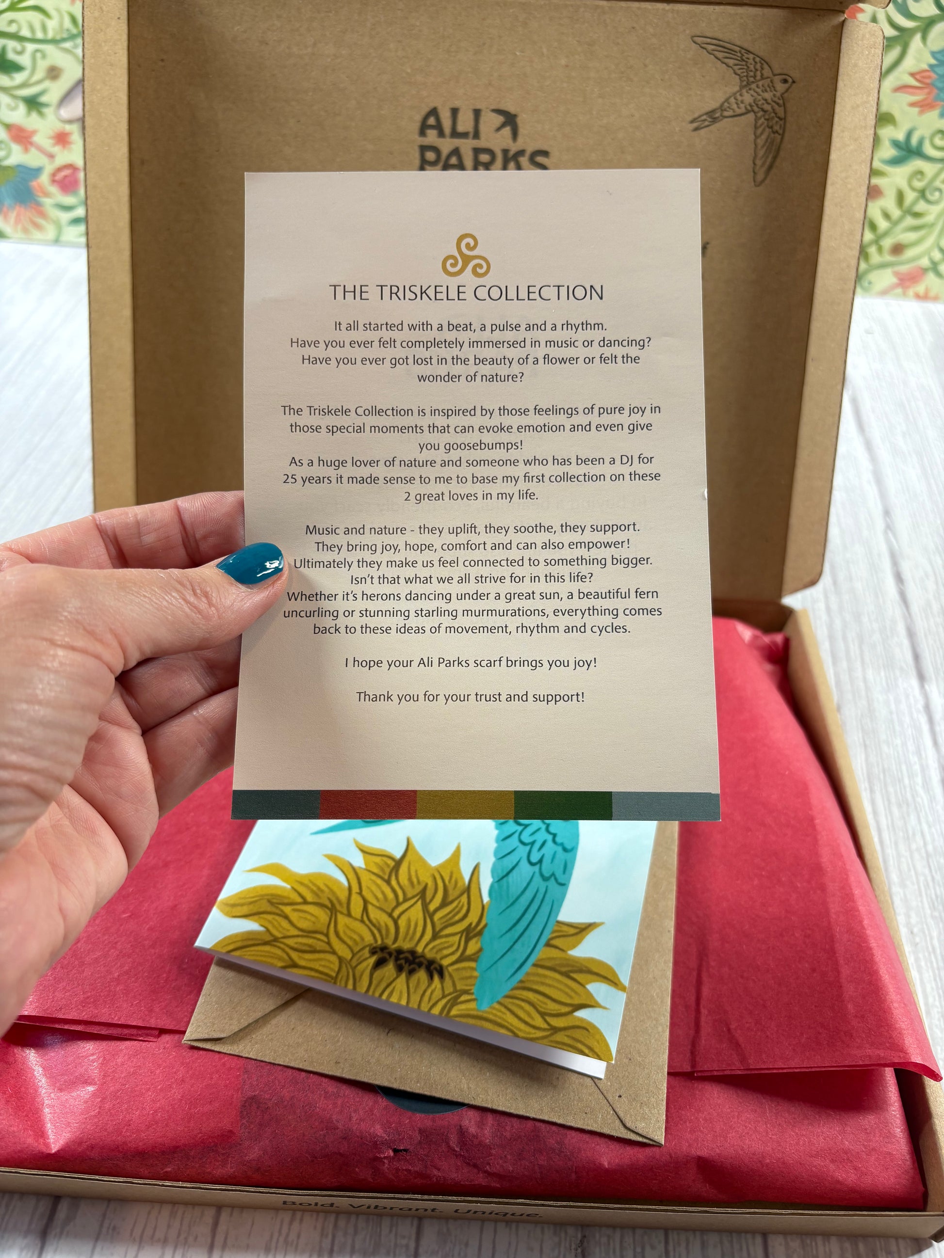Wild and Free Scarf – a striking piece from Ali's Triskele Collection, inspired by music, dance, movement and nature’s endless cycles.